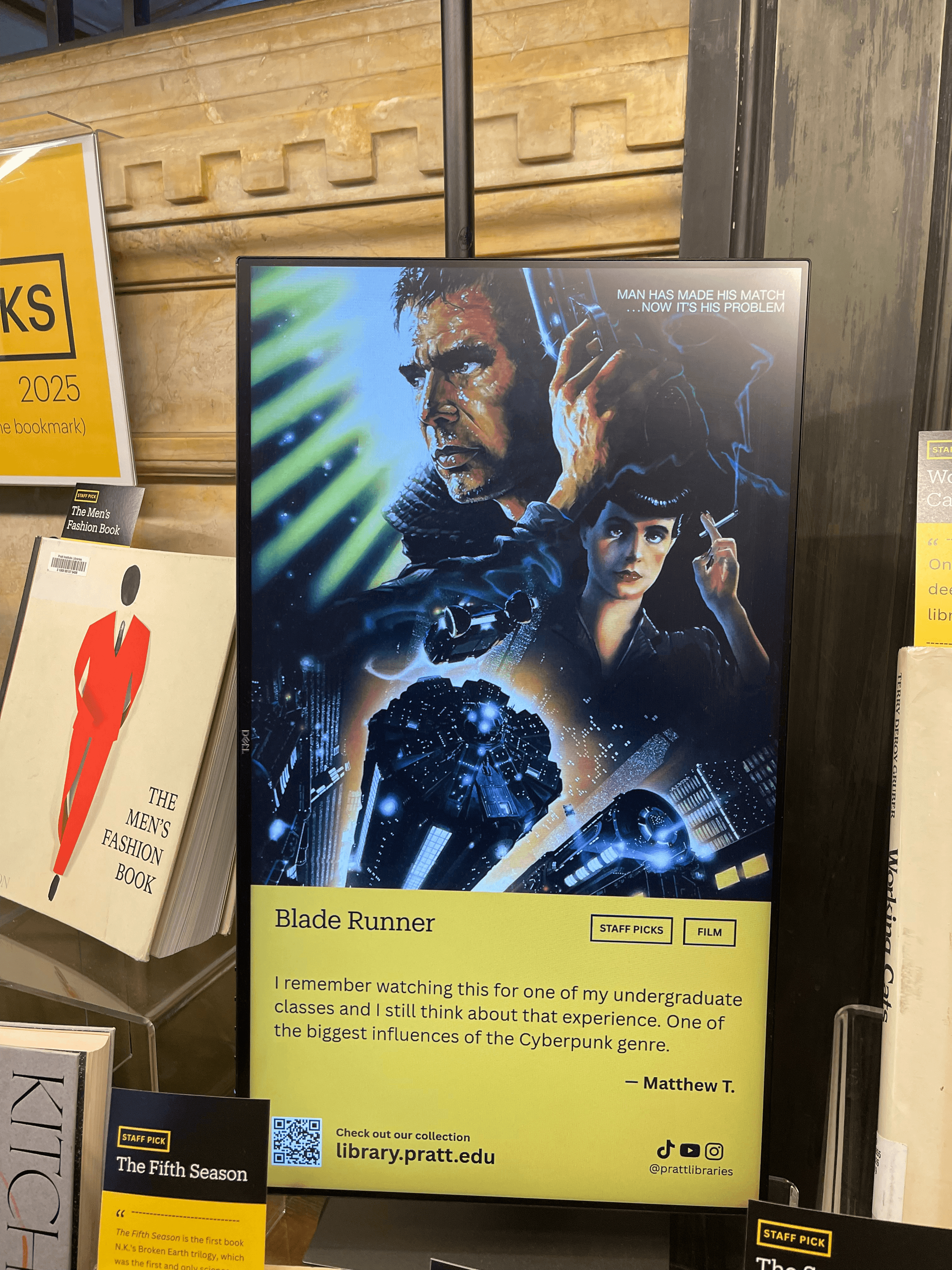 Staff Picks is an annual tradition at the library the staff can share their opinion on their favorite movie, video game, or book. I contributed to the redesign of the bookmarks and the digital signage for the showcase.