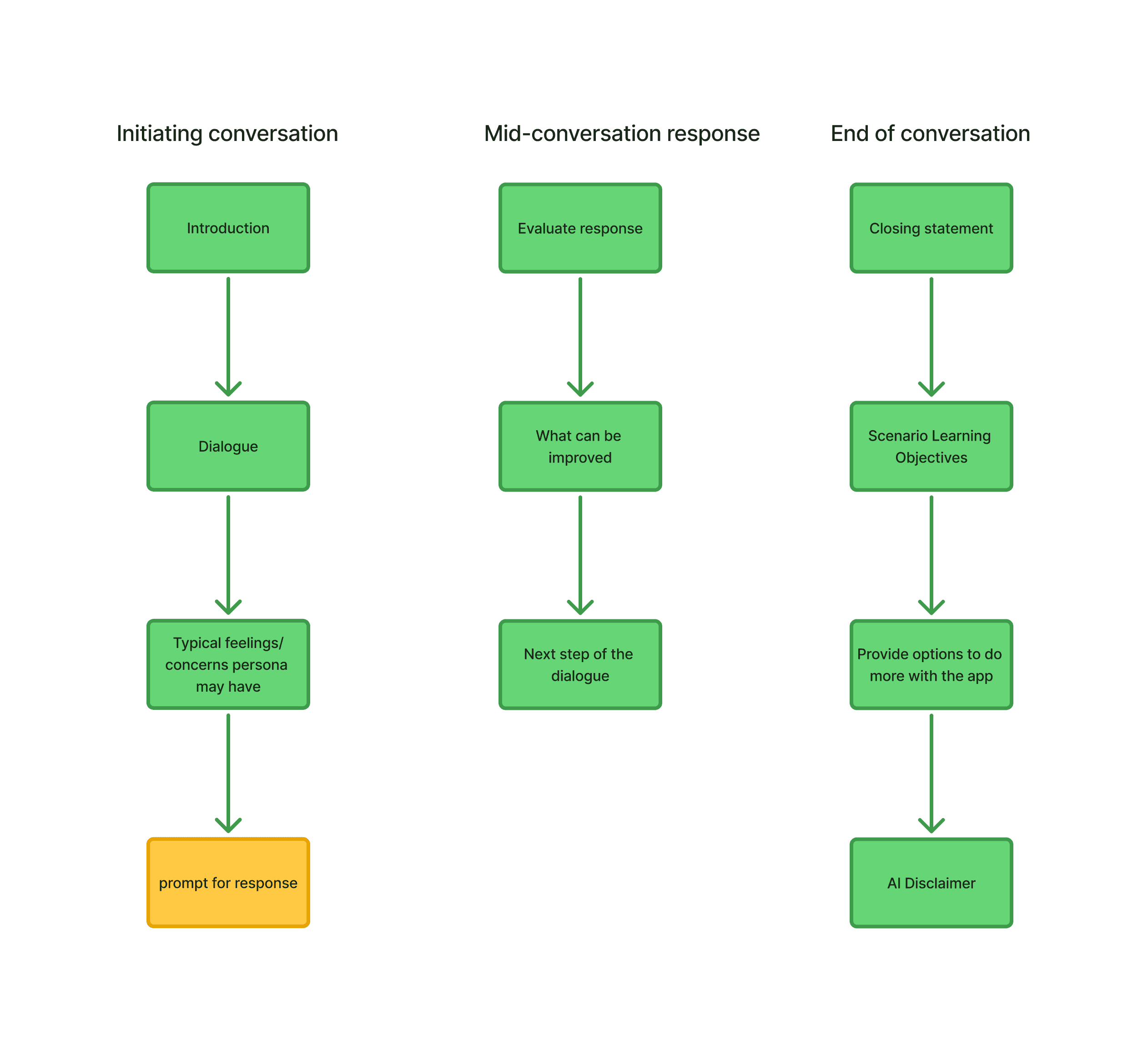 Rather than the typical prompt-response format, it’s a two-way dialogue between the mortgage broker and a fictional client. Conversations can take so many different turns and the prompt has to account for some of these key questions: